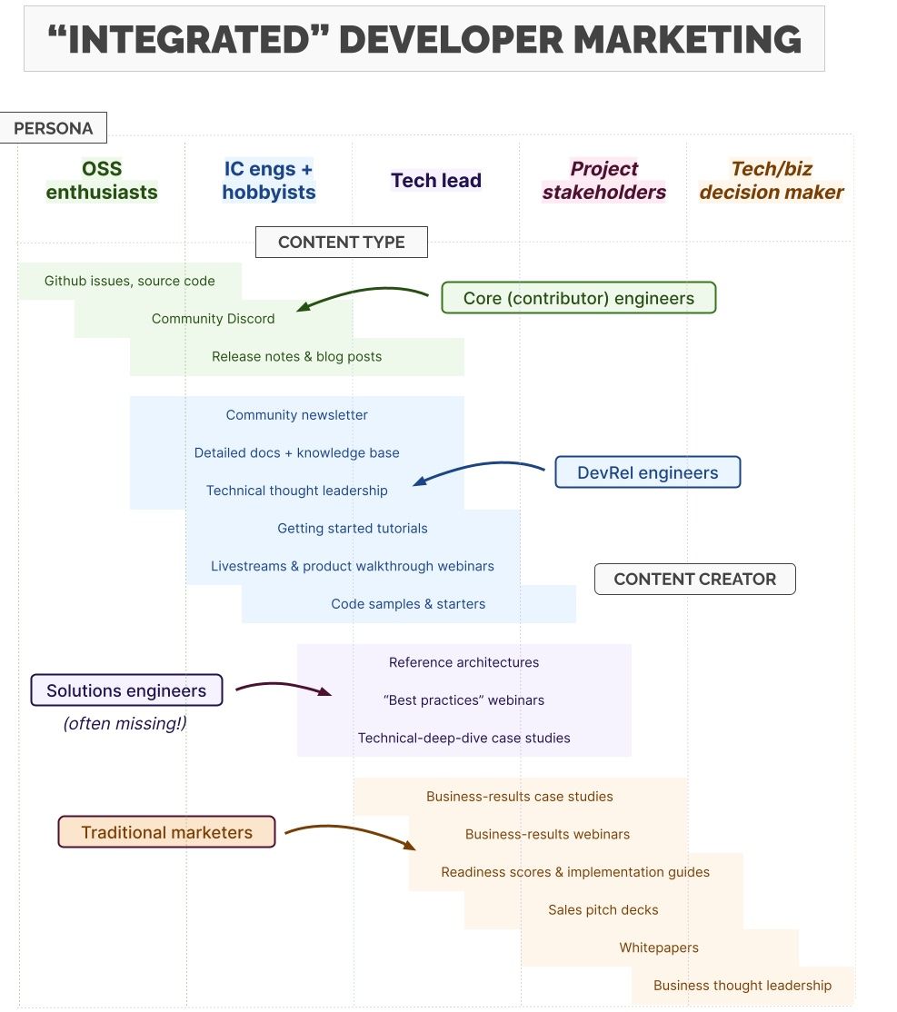 Integrated developer marketing occurs when these groups work harmoniously together to create a complete journey for users and customers.